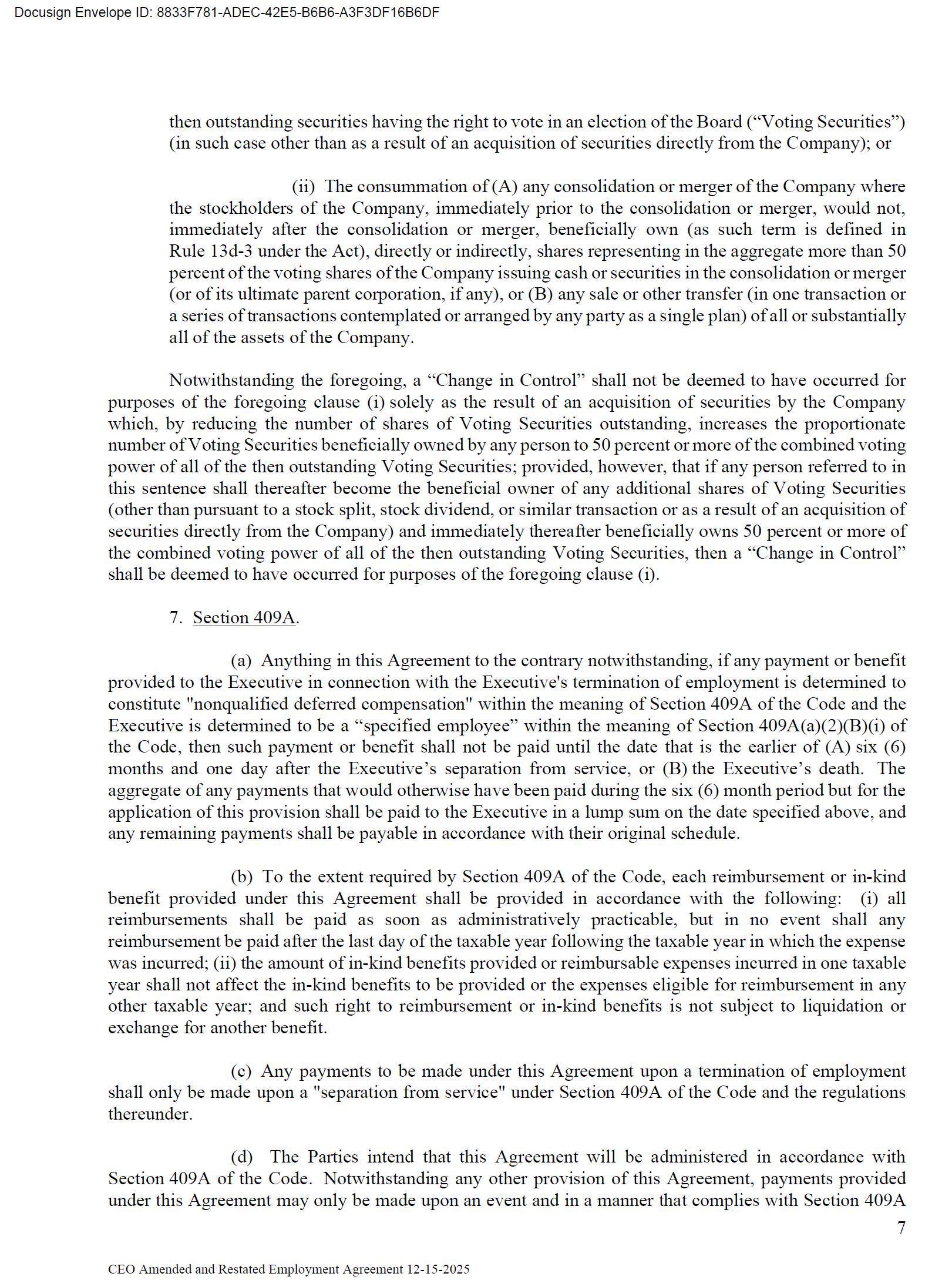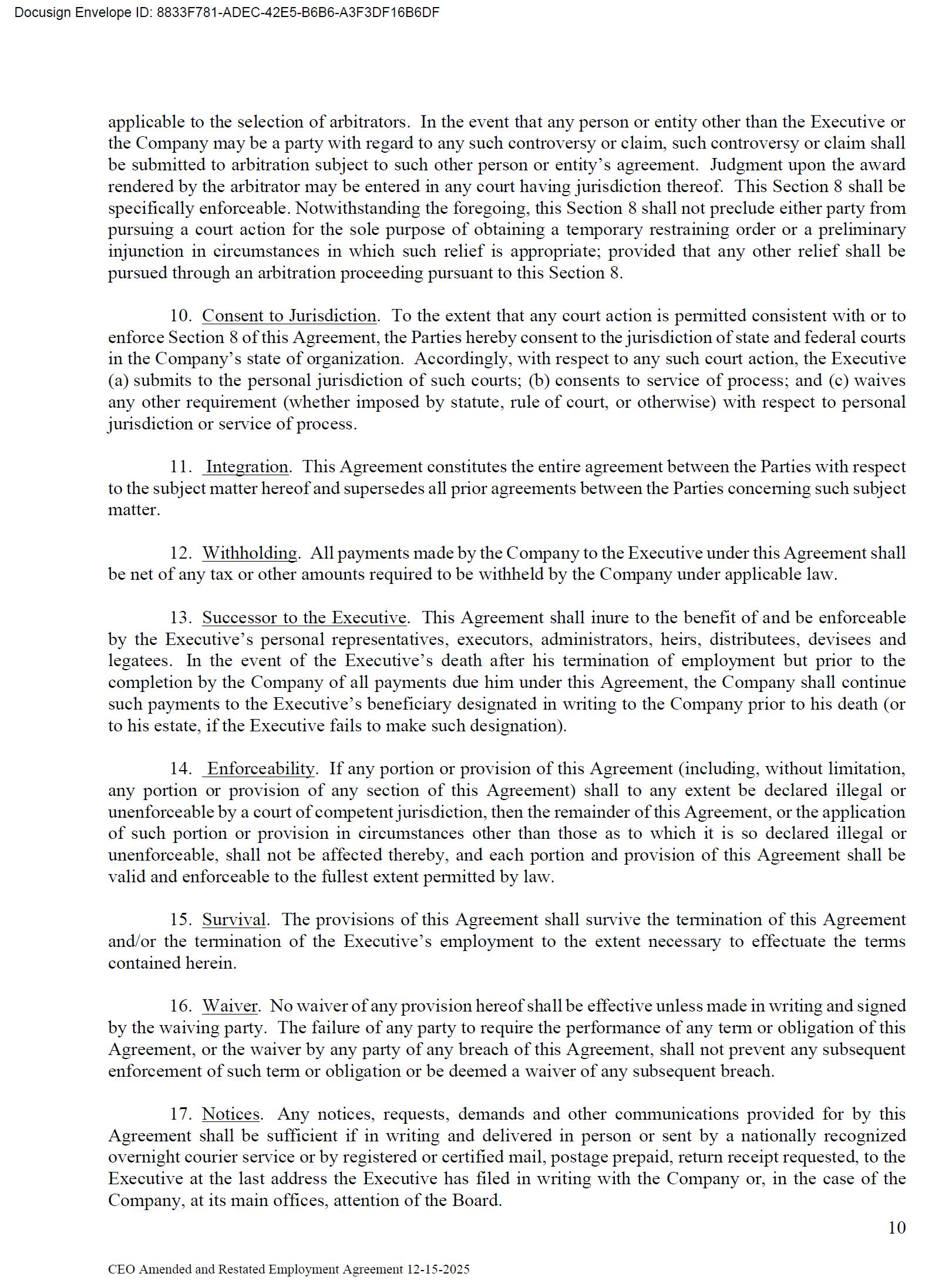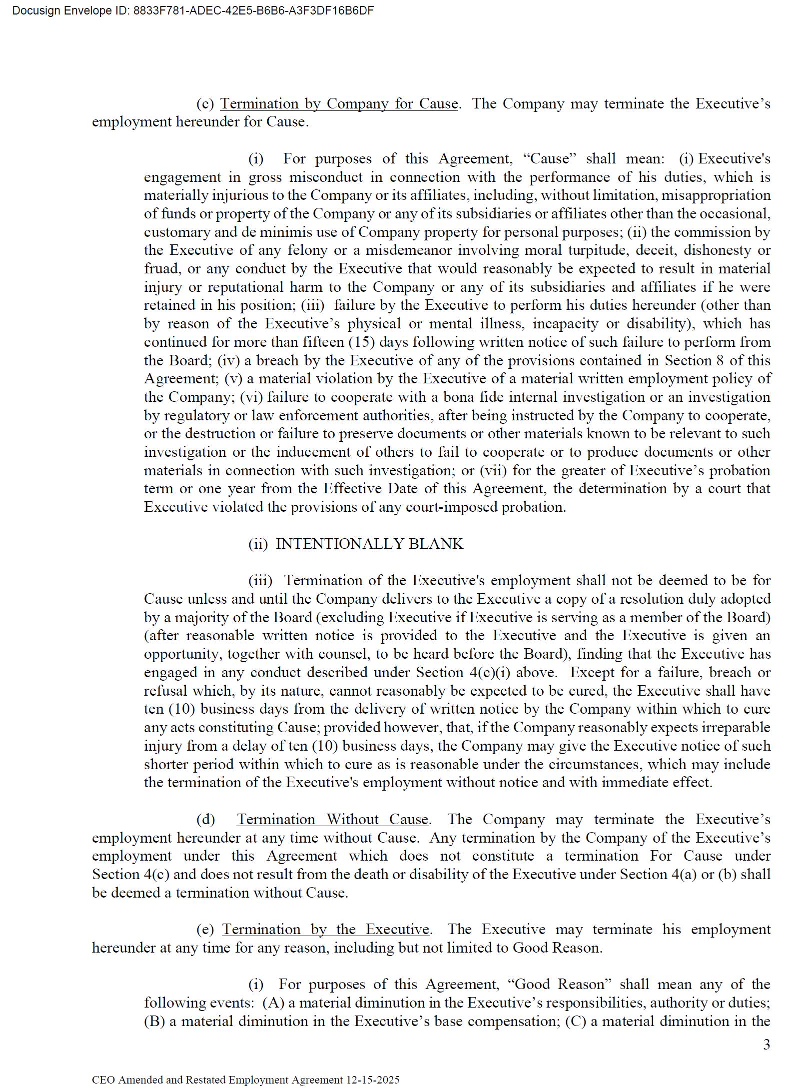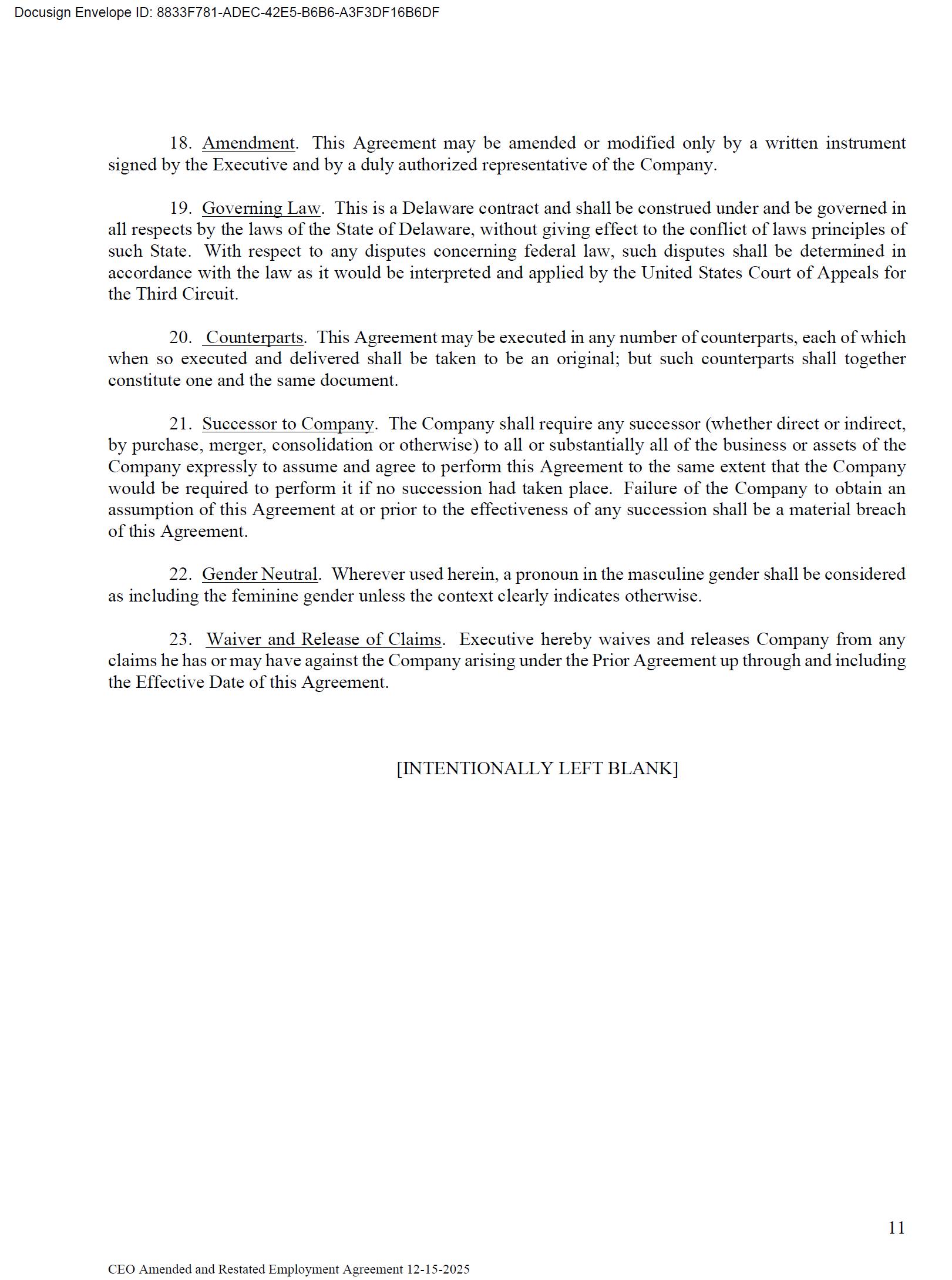 The foregoing description of the Employment Agreement is qualified in its entirety by reference to the full text of the Amendment, a copy of which is filed herewith as Exhibit 10.1 to this Current Report on Form 8-K and is incorporated by reference herein.